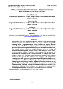 Bonsai plants, with their distinctive beauty and aesthetic value, have become an attraction for plant lovers in Indonesia. However, proper maintenance, especially watering, can be a challenge for many bonsai owners. In an effort to facilitate more efficient and effective maintenance, this research aims to develop an affordable and accessible soil moisture sensor-based automatic watering system. The research method includes an in-depth literature review of existing soil moisture sensor technologies and the growth characteristics of bonsai plants. Next, we designed and built a prototype watering system that can monitor soil moisture levels and automatically water bonsai plants according to their needs. Initial test results show that the system is able to maintain optimal soil conditions for bonsai plant growth. The system is also equipped with programming capabilities that allow users to customize the watering schedule according to their personal preferences. This research aims to provide a practical solution for bonsai plant lovers in Indonesia who want to maintain proper soil conditions for the growth of their plants, while minimizing the costs required for an automated watering system. This paper is expected to make a positive contribution to the maintenance of bonsai plants and serve as a guide for those interested in developing similar systems in the context of urban agriculture in Indonesia.