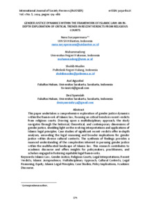 Nana Suryapermana, Muhammadong, Shohib Muslim, Asri Agustiwi, Desi Syamsiah (2024) GENDER JUSTICE DYNAMICS WITHIN THE FRAMEWORK OF ISLAMIC LAW: AN IN- DEPTH EXPLORATION OF CRITICAL TRENDS IN RECENT VERDICTS FROM RELIGIOUS COURTS. INTERNATIONAL JOURNAL OF SOCIETY REVIEWS (INJOSER), 1 (5).