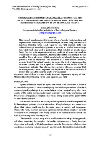 Danang, Kuswardono (2024) STRUCTURAL EQUATION MODELING-PARTIAL LEAST SQUARES (SEM-PLS) METHOD IN ANALYSIS OF THE EFFECT OF ANXIETY, FAMILY FUNCTION AND DEPRESSION ON THE QUALITY OF LIFE OF HEMODIALYSIS PATIENTS. INTERNATIONAL JOURNAL OF SOCIETY REVIEWS (INJOSER), 1 (8).