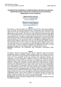 Muhammad Farisan, Kasyfi and Muhammad Gagah, Dirgantara (2026) HARMONISASI KEBIJAKAN ADMINISTRASI NEGARA DALAM ERA DESENTRALISASI: TINJAUAN LITERATUR ATAS KONFLIK KEBIJAKAN PUSAT–DAERAH. Jurnal Administrasi Negara, 3 (6).