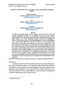 Robert Fransiska, Lite, Sri Hartini (2024) THE EFFECT OF MONETARY POLICY ON MICRO, SMALL AND MEDIUM ECONOMIC GROWTH. INTERNATIONAL JOURNAL OF SOCIETY REVIEWS (INJOSER), 2 (2).