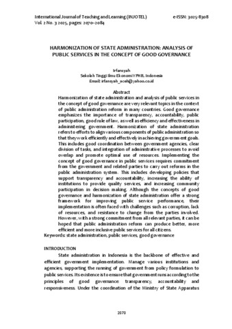 Irfansyah, Irfansyah (2025) HARMONIZATION OF STATE ADMINISTRATION: ANALYSIS OF PUBLIC SERVICES IN THE CONCEPT OF GOOD GOVERNANCE. INTERNATIONAL JOURNAL OF SOCIETY REVIEWS (INJOSER), 2 (3).