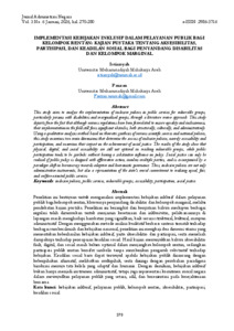 Istiarsyah, Istiarsyah and Fauzan, Fauzan (2026) IMPLEMENTASI KEBIJAKAN INKLUSIF DALAM PELAYANAN PUBLIK BAGI KELOMPOK RENTAN: KAJIAN PUSTAKA TENTANG AKSESIBILITAS, PARTISIPASI, DAN KEADILAN SOSIAL BAGI PENYANDANG DISABILITAS DAN KELOMPOK MARGINAL. Jurnal Administrasi Negara, 3 (6).