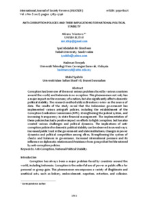 Miranu, Triantoro (2025) ANTI-CORRUPTION POLICIES AND THEIR IMPLICATIONS FOR NATIONAL POLITICAL STABILITY. INTERNATIONAL JOURNAL OF SOCIETY REVIEWS (INJOSER), 2 (5).