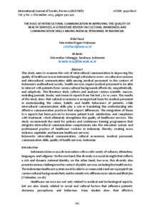 Rizki, Fauzi and Al-Amin, Al-Amin THE ROLE OF INTERCULTURAL COMMUNICATION IN IMPROVING THE QUALITY OF HEALTH SERVICES: A LITERATURE REVIEW ON CULTURAL AWARENESS AND COMMUNICATION SKILLS AMONG MEDICAL PERSONNEL IN INDONESIA. INTERNATIONAL JOURNAL OF SOCIETY REVIEWS (INJOSER), 3 (2).