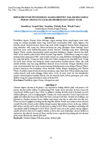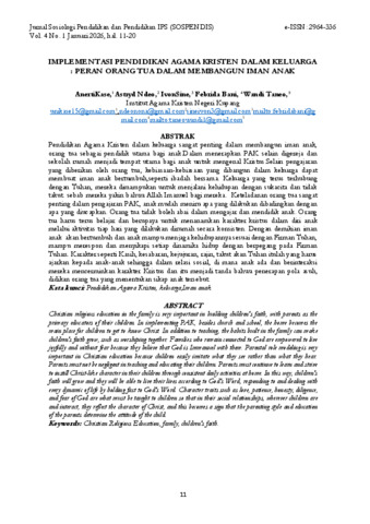 Anerti, Kase and Astryd, Ndeo and Ivon, Sine and Febrida Bani, Bani and Wandi Taneo, Taneo (2026) IMPLEMENTASI PENDIDIKAN AGAMA KRISTEN DALAM KELUARGA : PERAN ORANG TUA DALAM MEMBANGUN IMAN ANAK. Jurnal Sosiologi Pendidikan dan Pendidikan IPS (SOSPENDIS), 4 (1). ISSN 2964-336