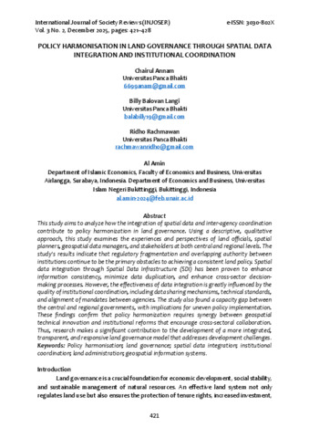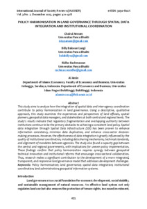 Chairul, Annam and Billy Balovan, Langi and Ridho, Rachmawan POLICY HARMONISATION IN LAND GOVERNANCE THROUGH SPATIAL DATA INTEGRATION AND INSTITUTIONAL COORDINATION. INTERNATIONAL JOURNAL OF SOCIETY REVIEWS (INJOSER), 3 (2).