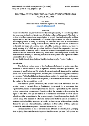 Era, Purike (2025) ELECTORAL SYSTEM AND POLITICAL STABILITY: IMPLICATIONS FOR PEOPLE'S WELFARE. Injoser, 3 (3).