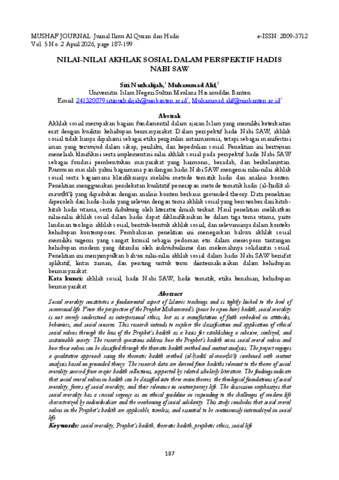 Siti Nurhalijah, Muhammad Alif (2026) NILAI-NILAI AKHLAK SOSIAL DALAM PERSPEKTIF HADIS NABI SAW. MUSHAF JOURNAL, 5 (2).