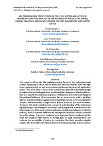 Susilowardani, Dara Pustika Sukma, Desi Syamsiah, Febri Atikawati Wiseno Putri, (2024) MULTIDIMENSIONAL PERSPECTIVES ON THE LEGAL SYSTEM AND JUSTICE ININDONESIA: A CRITICAL ANALYSIS OF THE INTERPLAY BETWEEN LEGAL NORMS,JUDICIAL PRACTICES, AND SOCIO-ECONOMIC FACTORS IN ACHIEVING SUBSTANTIVE JUSTICE. INTERNATIONAL JOURNAL OF SOCIETY REVIEWS (INJOSER), 1 (3).